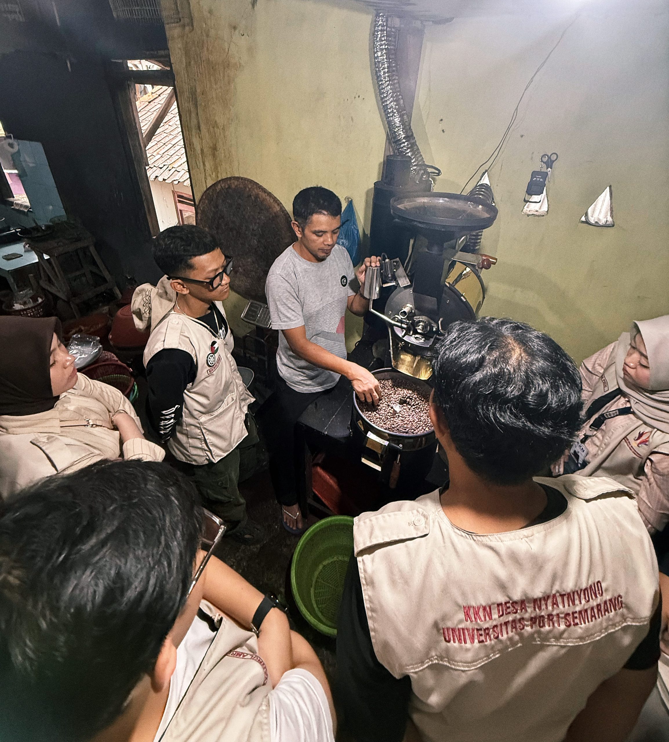 Selain meningkatkan keterampilan, kegiatan meroasting kopi juga bertujuan menumbuhkan kesadaran masyarakat akan pentingnya pengolahan pascapanen yang baik untuk meningkatkan nilai tambah dan daya jual produk. Dengan kualitas kopi yang lebih terjaga, kopi Desa Nyatnyono berpotensi menjadi produk unggulan desa yang mampu bersaing di pasar yang lebih luas.