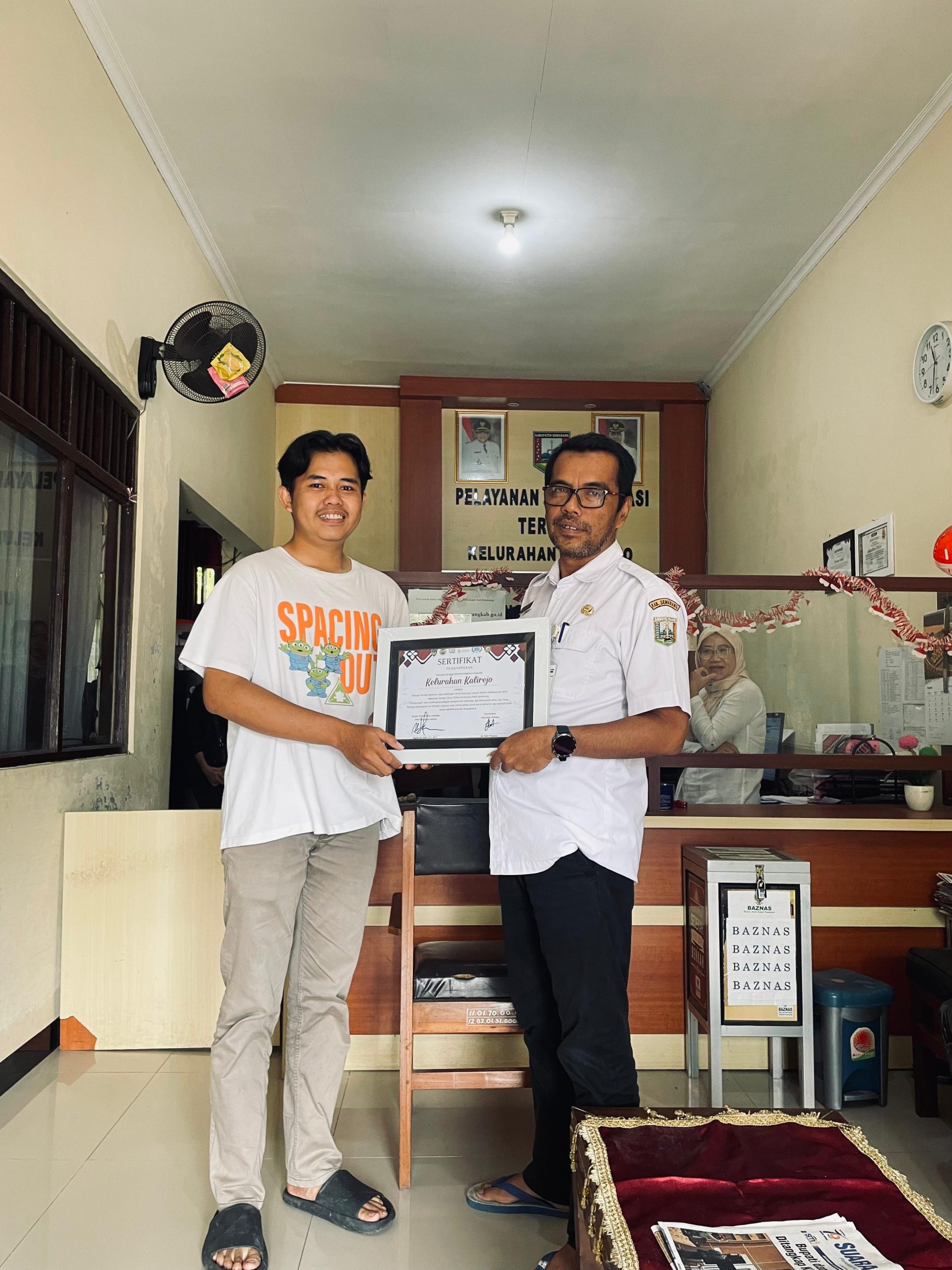 Acara penyerahan ini berlangsung dengan suasana penuh kehangatan dan diterima langsung oleh Bapak Lurah Kalirejo di ruang kerjanya. Selain penyerahan sertifikat, Kelompok 08 juga memberikan cinderamata khusus sebagai bentuk terima kasih atas bimbingan dan fasilitas yang diberikan pihak kelurahan kepada mahasiswa selama menjalankan berbagai program pemberdayaan masyarakat.