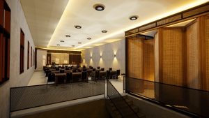 Pencahayaan juga menjadi aspek penting dalam desain ini. Titik lampu ditempatkan secara strategis untuk menciptakan suasana yang nyaman sekaligus memenuhi kebutuhan pencahayaan yang optimal. Tidak hanya itu, layout tempat duduk telah dirancang dengan memperhitungkan ergonomi dan ruang gerak manusia, memastikan kenyamanan dan kemudahan dalam berbagai acara.