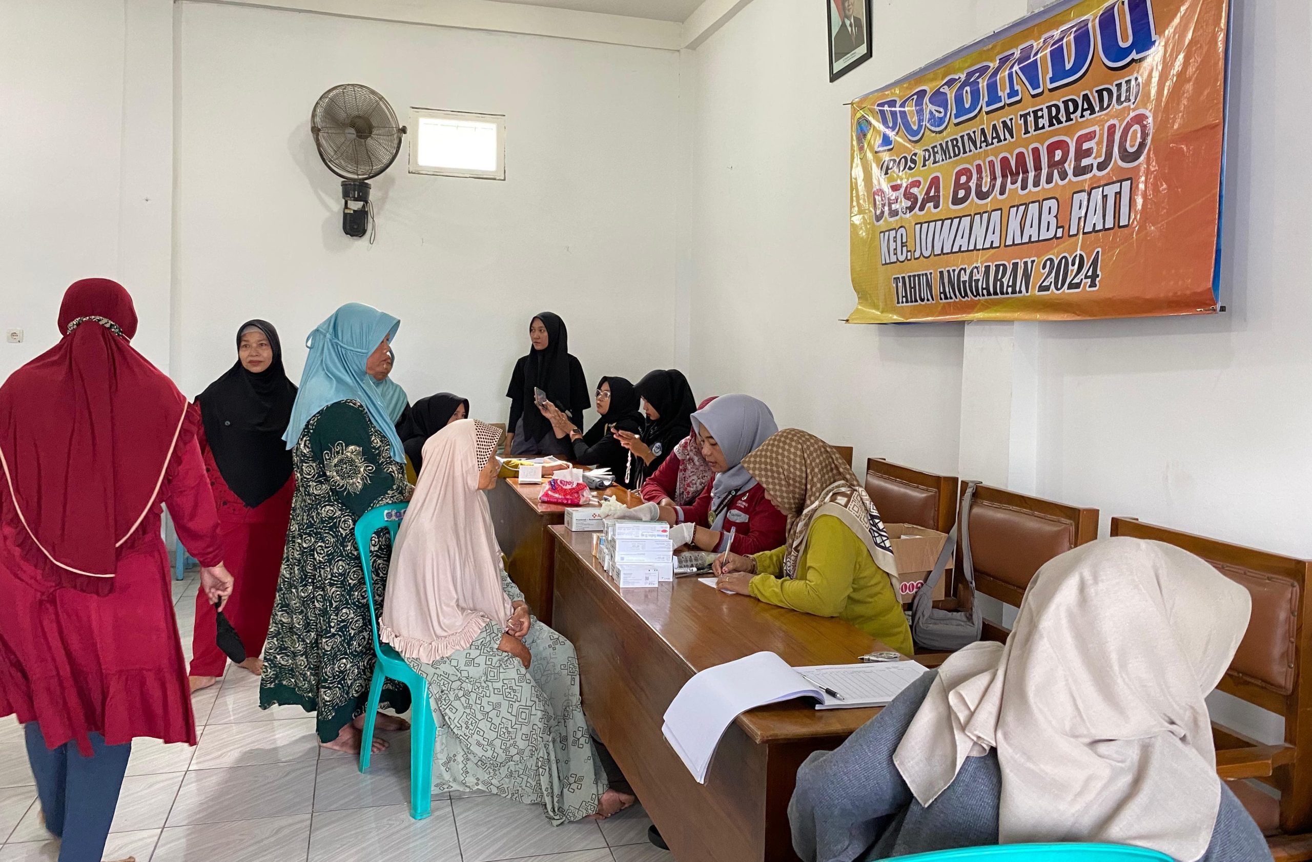 Pati, Bestarinesia.com – Mahasiswa Kuliah Kerja Nyata (KKN) Universitas PGRI Semarang (UPGRIS) Kelompok 3 membantu kegiatan Pos Pembinaan Terpadu (Posbindu) di Desa Bumirejo, Kecamatan Juwana Kabupaten Pati. Kegiatan ini bertujuan untuk meningkatkan kesadaran masyarakat dalam menjaga kesehatan, khususnya dalam pencegahan dan pengendalian penyakit tidak menular (PTM).