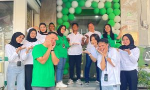 Karyawan Pegadaian Cabang Kalibanteng bersama mahasiswa magang UPGRIS berpose bersama usai peluncuran aplikasi digital Tring!