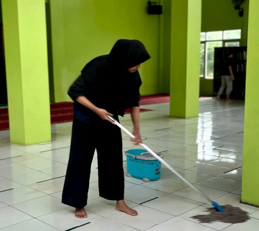 Dalam pelaksanaannya, kegiatan bersih-bersih dilakukan secara menyeluruh. Para mahasiswa bersama warga menyapu dan mengepel lantai masjid, membersihkan karpet, menata kembali perlengkapan ibadah, serta membersihkan kaca jendela dan ventilasi. Selain itu, area tempat wudu dan kamar mandi juga turut dibersihkan agar tetap higienis dan layak digunakan oleh jamaah.