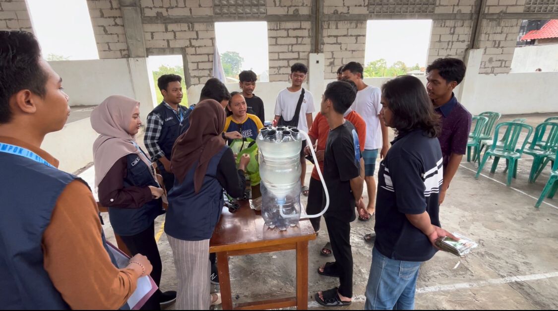 Mahasiswa KKN menjelaskan langkah-langkah budidaya secara rinci, mulai dari pemilihan bibit, pengisian air, pemberian pakan, hingga perawatan harian. Para peserta bahkan secara aktif mendekati dan mengamati langsung galon budidaya lele yang telah disiapkan sebagai contoh.