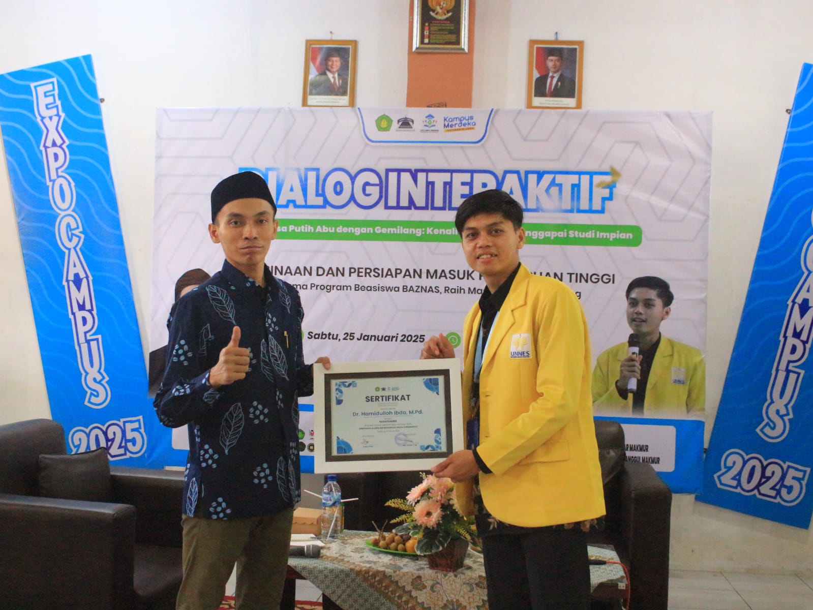 Setelah pembukaan, kegiatan dilanjutkan dengan Dialog Interaktif bertajuk Melepas Masa Putih Abu dengan Gemilang: Kenali Diri untuk Menggapai Program Studi Impian” itu dihadiri ratusan pelajar kelas X, XI, XII MA. Madarijul Huda dan pelajar SMK Mambaul Huda dengan narasumber Wakil Rektor Institut Islam Nahdlatul Ulama (Inisnu) Temanggung, Dr. Hamidulloh Ibda. Sebagai narasumber Dialog Interaktif, Ibda menyampaikan materi bertajuk “Strategi Kuliah Bermodal Nekat dan Bismillah”.