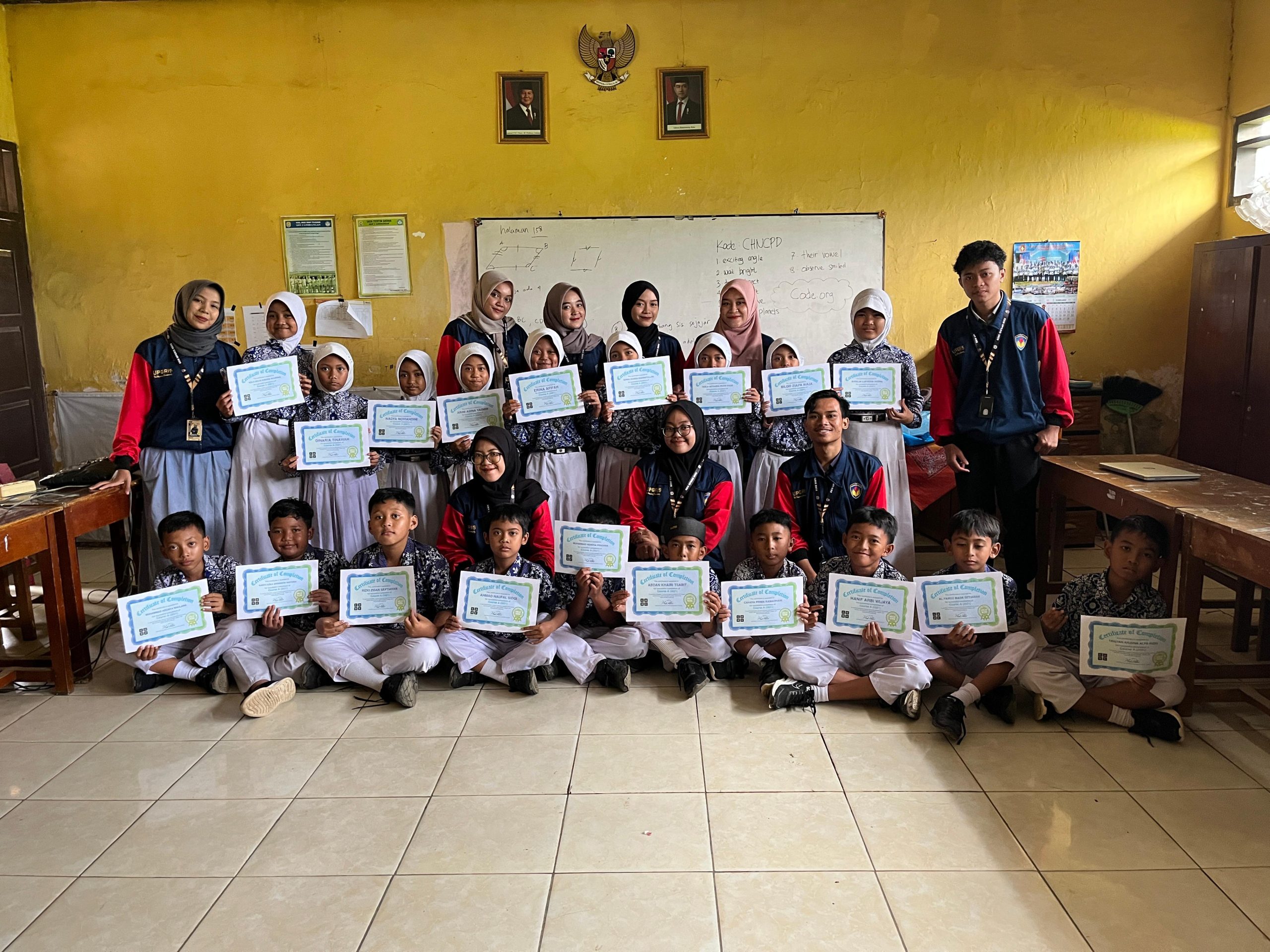 Di akhir pelatihan, mahasiswa KKN memberikan sertifikat kepada siswa yang telah berpartisipasi sebagai bentuk apresiasi atas semangat mereka dalam belajar coding.