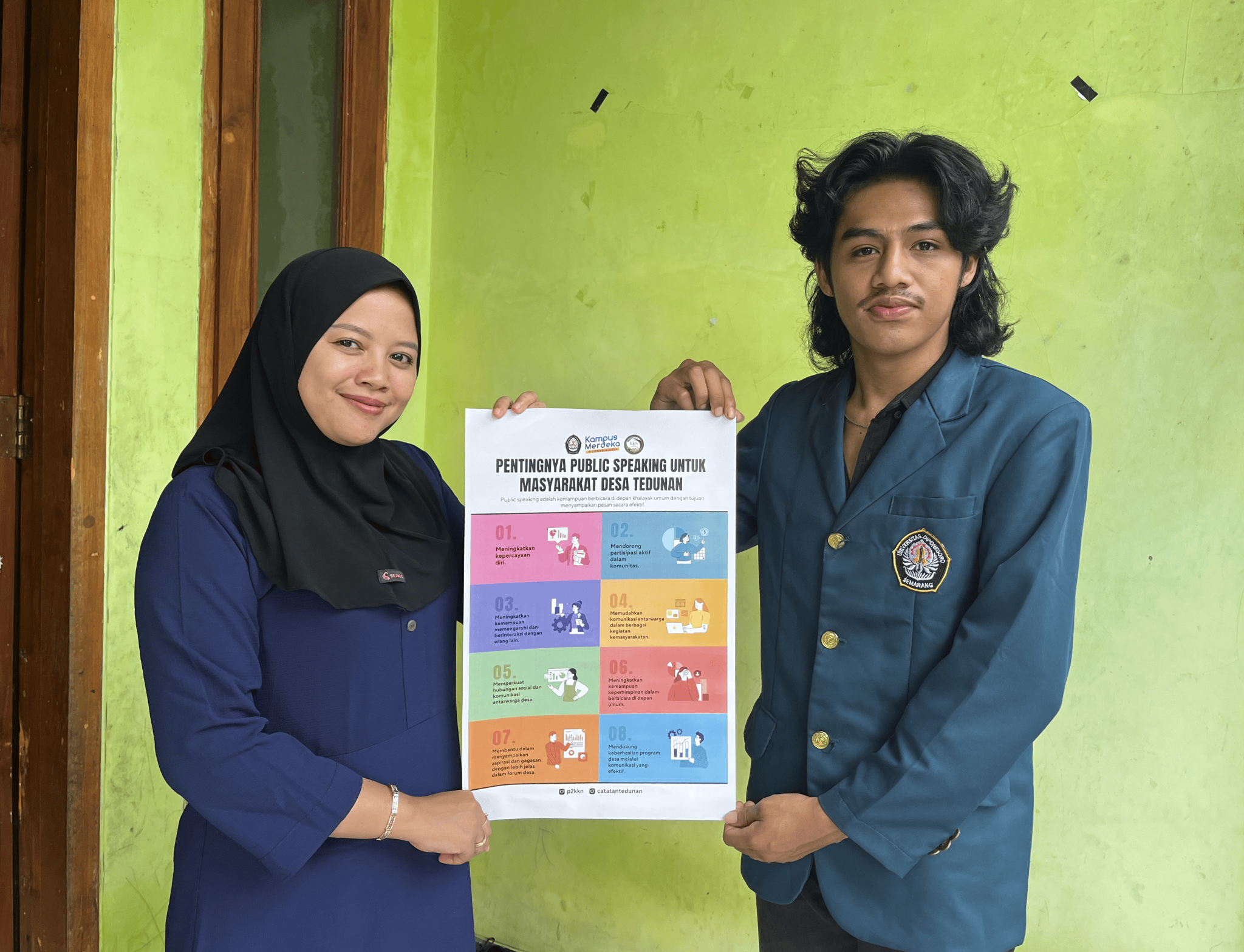 Batang, Katakampus.com – Tim Kuliah Kerja Nyata (KKN) TIM 1 Universitas Diponegoro (UNDIP) menggelar program pelatihan public speaking untuk masyarakat Desa Tedunan, Kecamatan Gringsing, Kabupaten Batang, Jawa Tengah. Program ini menjadi bagian dari kerja sama dengan pemerintah desa dalam rangka pemberdayaan masyarakat melalui Redesain Balai Desa Tedunan yang dilaksanakan pada Senin, (10/02/25).